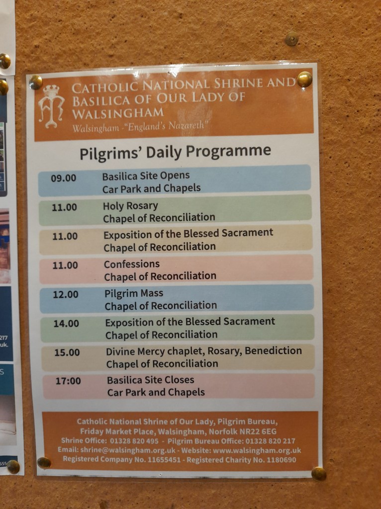 About Walsingham: According to tradition, the Blessed Virgin Mary took Lady Richeldis’ soul from England to Nazareth during a religious ecstasy to show her the house where the Holy Family once lived and in which the Annunciation of Archangel Gabriel occurred..