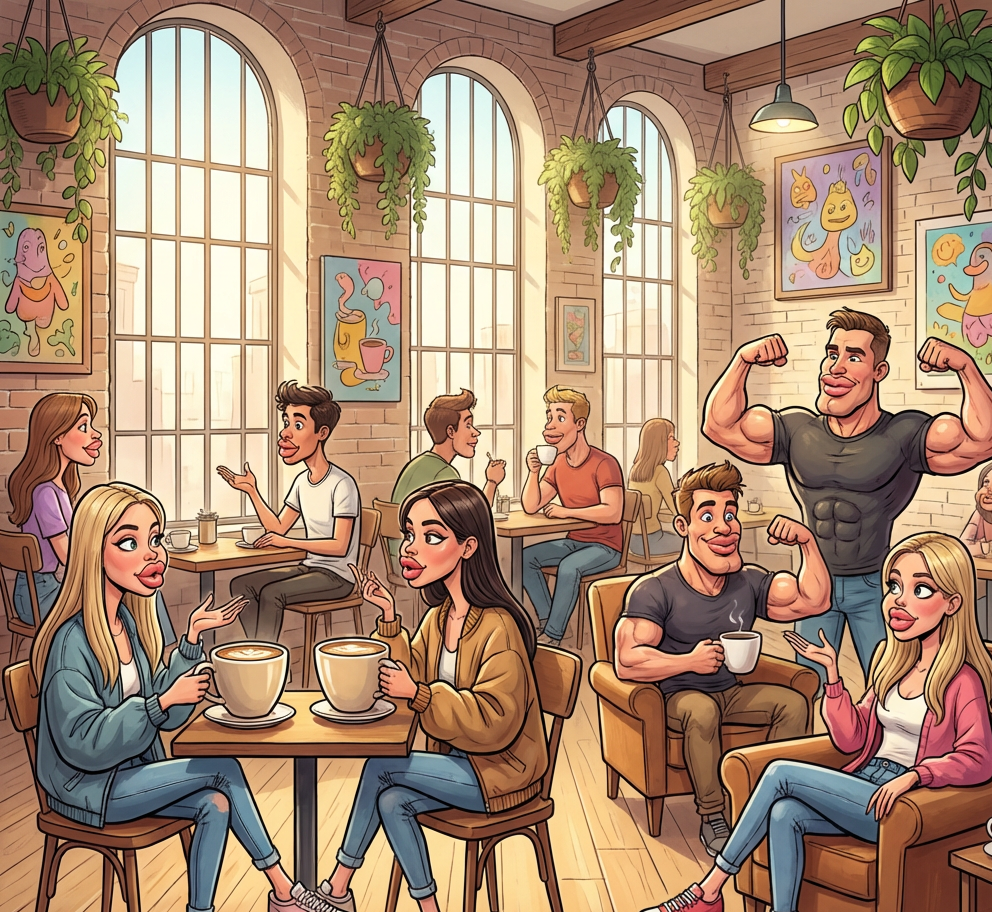 ‘Look around’ she said as she puffed up her lips pointing at most of the women in the coffee shop!